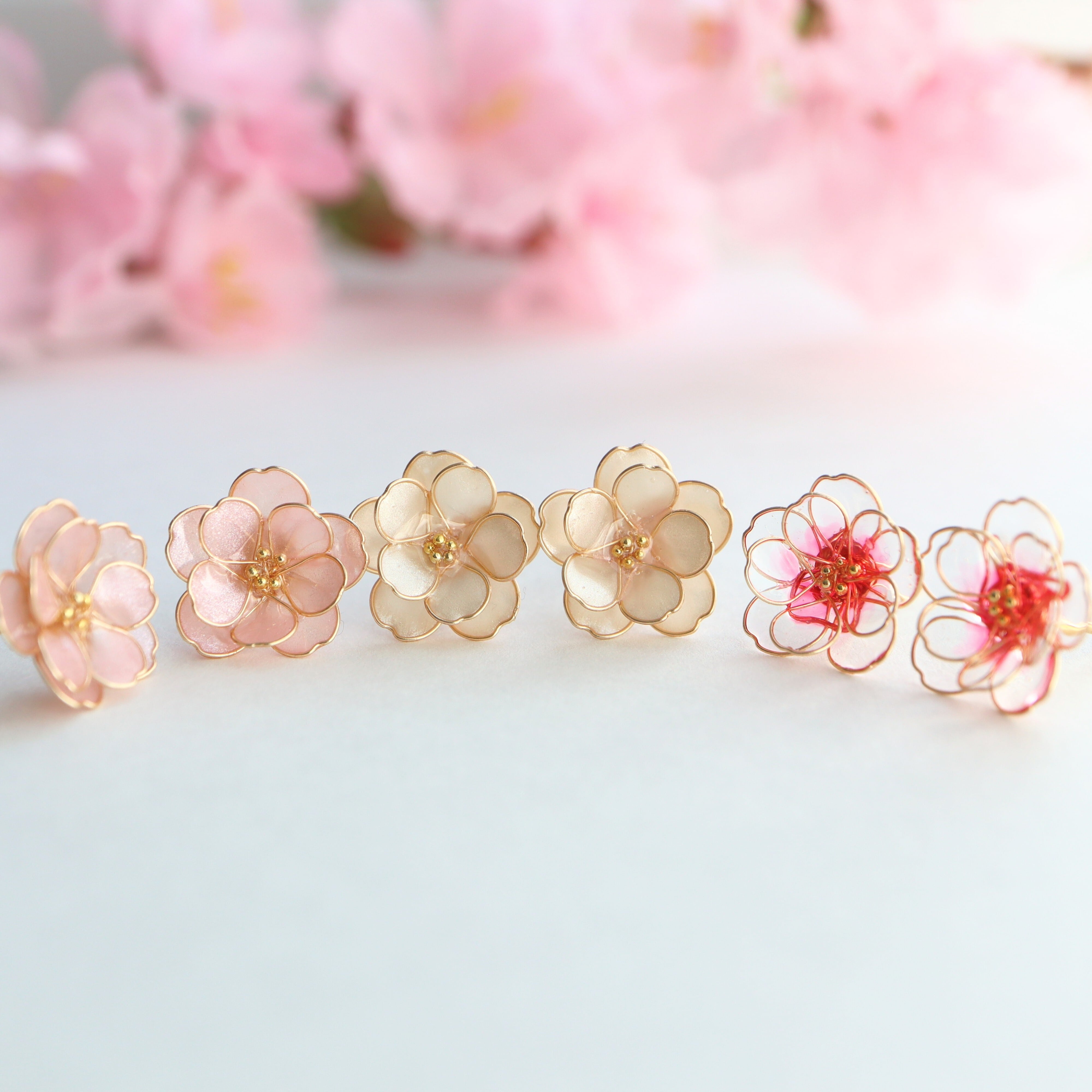 小さな八重桜のピアス
